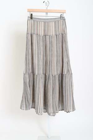 Made from cotton confetti check print, this flowy tiered skirt features a flat front and an elasticized back waist. - Fabric: Confetti Check | 100% Cotton - Care: Machine wash cold, gentle cycle, tumble dry low - Fit: True to size - Model is 5'10" and wears size Small - Made in Los Angeles