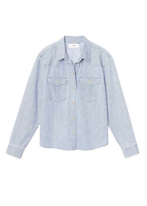 A modern nod to classic Americana, the Byron Shirt from Xirena is crafted from railroad-striped denim. Designed with Western-inspired detailing and an easy front-closure silhouette, it brings heritage character to everyday dressing. - Railroad-striped Liberty denim with a structured yet wearable feel - Button-front closure with pearlized snap buttons - Western-style front and back yokes for subtle vintage appeal - Button-flap chest pockets add utility and authenticity - Relaxed fit that layers effortlessly or stands alone 100% Cotton Liberty Railroad Denim. Designed in Los Angeles. Imported.