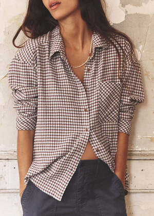 Soft and relaxed with an effortless feel, the Jordy Shirt by Xirena is crafted from a brushed cotton-blend plaid for lived-in comfort and everyday ease. Its boxy silhouette and classic shirting details make it an easy layer that works year-round. - Brushed Essex plaid with a soft, cozy hand - Button-front closure for versatile styling - Boxy, relaxed fit for an easy, modern shape - Left chest pocket adds a classic touch - Highlow shirttail hem for flattering proportion - The model is 5'10" and wears size Small 51% Cotton, 31% Viscose, 14% Polyester, 4% AF. Made in Los Angeles.