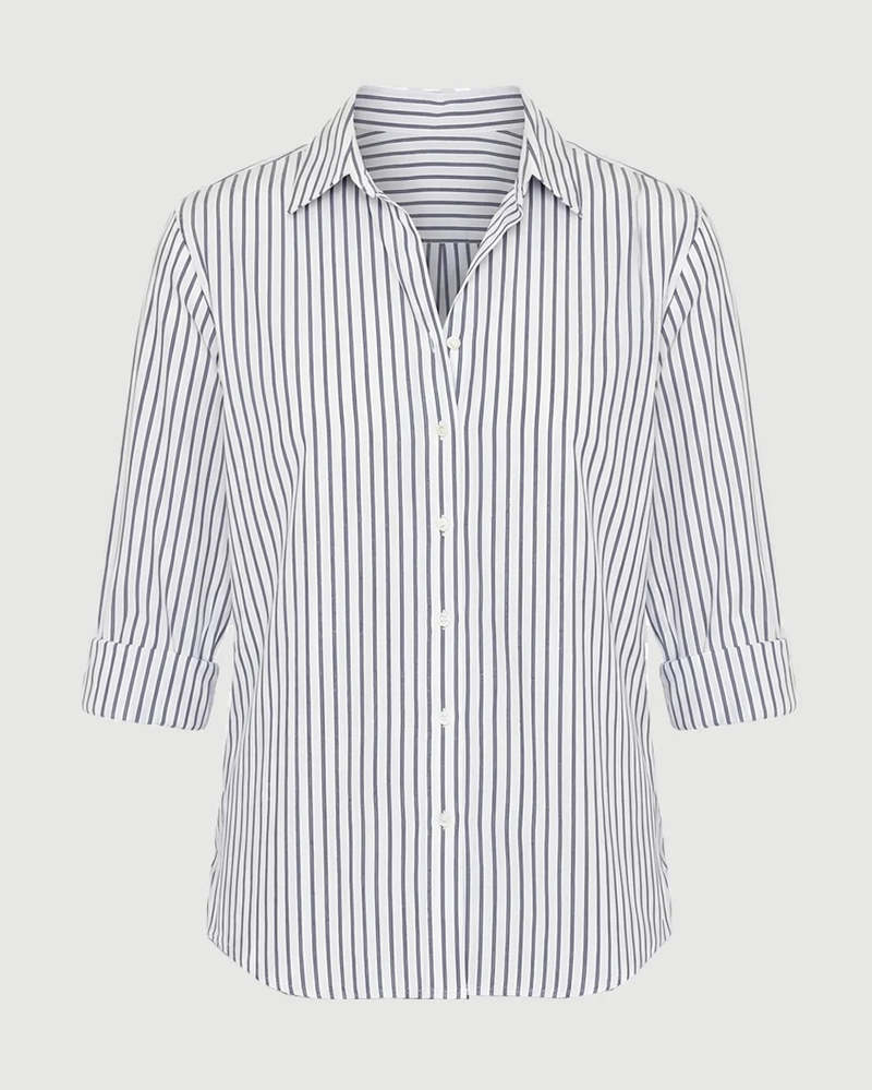 The Beau Shirt in Windy Blue by Xirena is a quintessential button-down shirt featuring a menswear-inspired shape. - Material: 100% Cotton - Fit: True to size - Style #: X5TNS111 Model is wearing a size Small.