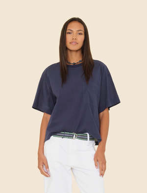Make a (cozy) statement. Joelle is an oversized t-shirt with a soft hand. This timeless t-shirt has a boxy fit and features a pocket detail. - Fabric: 100% cotton - Care: Machine wash cold, gentle cycle, tumble dry low - Fit: True to size - Model is 5'10" and wears size Small - Made in Los Angeles