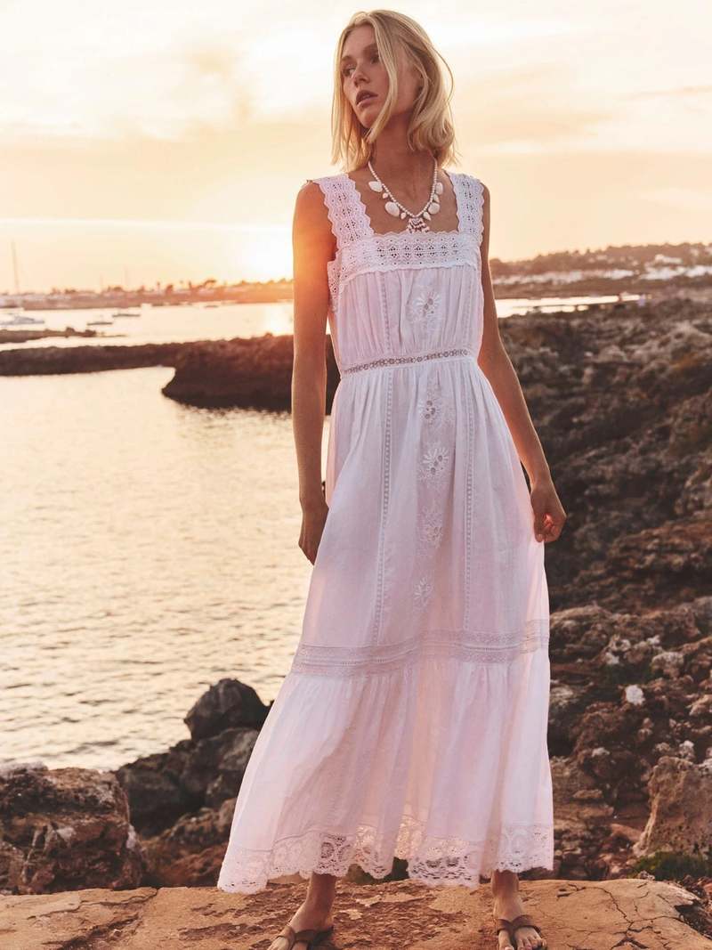 Delicate Details. Anita is new this season in a superfine cotton voile with a soft hand. This ultra-femme midi dress features eyelet straps, intricate embroidery, and lace trim throughout, finished with a ruffled hem and elasticized back. Fabric: 100% Cotton Lining: 100% Cotton Machine wash cold, gentle cycle, tumble dry low. Made in India. Measurements: Fit: True to size. Model is 5'10" and wears size Small.