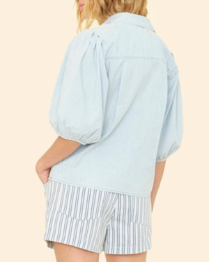 The Audrey Shirt combines timeless elegance with contemporary style. Romantic puff sleeves add dimension and movement, while the silhouette flatters and drapes beautifully. Versatile enough to layer or wear solo, it can be dressed up or down for any occasion. Care: 100% cotton.