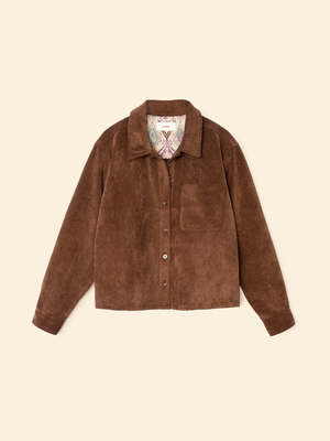 Cut the Cord. Benji is new this season in a corduroy with contrast ikat print cotton lining. This shirt jacket is detailed with faux horn buttons, a front patch pocket, and a pleated back yoke for added shape and ease of movement. Fabric: Bleeker Corduroy | 90% Poly, 8% Polyamide, 2% Elastane Lining: 100% Cotton Made in Los Angeles Fit: True to size.