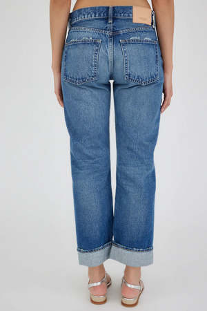 - Mid-rise - Ankle-length (cuffed) - This style can be uncuffed for a longer inseam - Mid-weight, non-stretch denim - Button fly