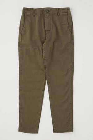 description: - Khaki tapered chino trousers - Zipper fly closure - 4 pockets fabric: Light weight fabric 97% Cotton, 3% Spandex Imported, Japan measurements: Designed for a fitted look. The model is wearing a size 26. Model Measurements: Height 5'5", Bust 79cm, Waist 58cm, Hip 91cm Size 24: Waist 67.5cm, Hip 88.4cm, Rise 24.3cm, Inseam 67cm Size 25: Waist 70.5cm, Hip 91.4cm, Rise 24.5cm, Inseam 69cm Size 26: Waist 73.5cm, Hip 94.4cm, Rise 24.7cm, Inseam 69cm Size 27: Waist 76.5cm, Hip 97.4cm, Rise 24.9cm, Inseam 71cm Size 28: Waist 79.5cm, Hip 100.4cm, Rise 25.1cm, Inseam 71cm Size 29: Waist 82.5cm, Hip 103.4cm, Rise 25.3cm, Inseam 71cm Size 30: Waist 85.5cm, Hip 104.6cm, Rise 25.5cm, Inseam 73cm Size 31: Waist 88.5cm, Hip 109.4cm, Rise 25.7cm, Inseam 73cm
