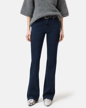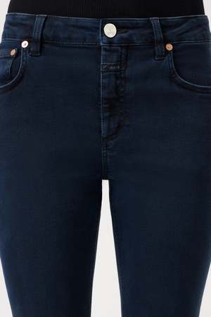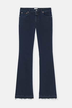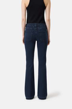 Designed for maximum stretch and ultimate comfort, the Jovanna Pants from Closed move with you effortlessly while maintaining their shape. This flattering flared fit features a low waist and regular-length leg, creating a timeless, elongating silhouette. Crafted in Italy from premium dark blue stretch denim by the renowned Candiani mill, this sustainable fabric blends regenerative cotton with recycled elastane and is treated with innovative Kitotex technology for a softer handfeel and reduced environmental impact. Details: - Flared fit / Low waist / Regular leg - Highly stretchable and shape-retaining denim - Inside leg length: approx. 78 cm (size 27/30), 84 cm (size 27/32) - Front rise: approx. 24 cm - Leg opening: approx. 24 cm - Model is 178 cm and wears size 27/32 - Made in Italy - Fabric: 97% Regenerative Cotton, 3% Recycled Elastane