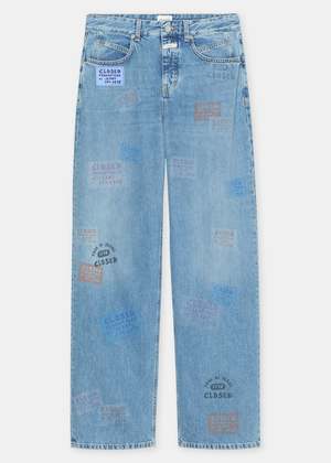 Closed's Nikka Jean is crafted from 80s-inspired denim with a unique salt-and-pepper look. These Nikka Jeans combine colorful printings with embroidered patches and feature a mid-waist, a long and wide leg, subtle whiskering and scraping details, and a classic 5-pocket design. The eco-conscious construction uses 20% recycled cotton blended with cotton from the Better Cotton Initiative. No stretch; fits true to size model is wearing a size 27. Details - Inside leg length approx. 78 cm / 30.7'' - Front rise: approx. 28 cm / 11'' - 1/2 leg opening approx. 25.3 cm / 10" 80% cotton, 20% cotton (recycled) Machine wash cold. Hang or lay flat to dry. Handmade in Italy by renowned denim specialists.