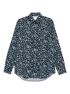 Men > Clothing > Shirts Blue, long sleeves, polo collar, button fastening, all-over floral print.
