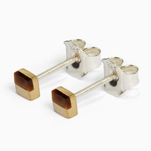 Square recycled brass earrings with tiger's eye gemstones. Size: One Size Dimension: 0.14" x 0.14" / 3.5mm x 3.5mm Base metal is recycled brass AAA standard gemstones Handcrafted in satin finish MYW06BR058TE