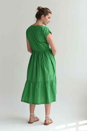 The Penelope Flounce Dress is a pretty, unfussy, feminine dress, perfect for parties and other special occasions or your next weekend brunch out with friends. Made in a high quality 80g cotton silk, the Penelope has a pretty jewel neckline, covers the top of your shoulders and hits mid-calf. Elastic waist and side seam pockets. - 70% Cotton, 30% Silk - French seamed for a clean, quality finish - Made in India by a small, family owned factory Fit Guide: Model is 5'3" wearing size extra small Extra Small - Waist (Unstretched) 25.5", Length 47.5" Small - Waist (Unstretched) 28", Length 48" Medium - Waist (Unstretched) 30", Length 48.5" Large - Waist (Unstretched) 32", Length 49" To see the entire M.PATMOS collectsion, click here.