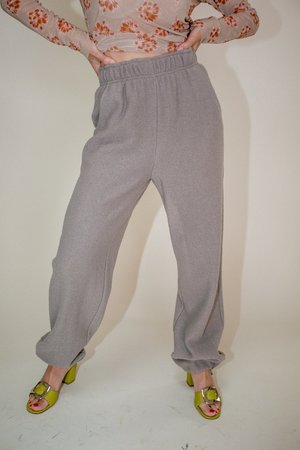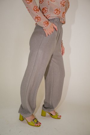 No.6 Broome Pant in Gray - Full length straight fit pant in soft, cozy boiled wool. Intentionally long pant legs with ties at cuff for shape. Side pockets. Lined. Perfect for everyday wear in cooler months. - Fabric: Shell: 52% Virgin Wool, 48% Viscose. Lining: 100% Polyester. - Made in the USA