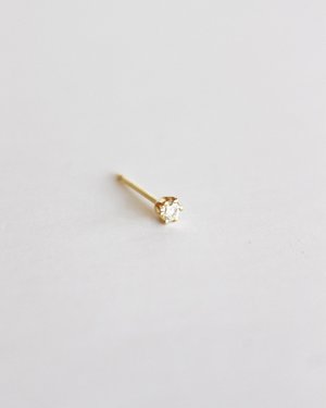 - In 14K yellow gold, with gold post and back - Brilliant cut white diamond in a six prong setting - Total carat weight of 0.10 carats. approximately 2.4 mm in diameter - Reclaimed gold and conflict-free diamonds - handmade in NYC