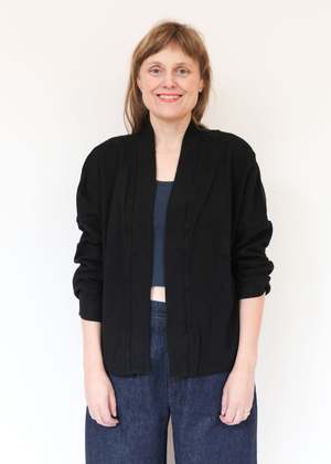 100% organic cotton sweatshirt fleece cardigan from Wol Hide. Features a drop shoulder and easy open shape. Made in USA.