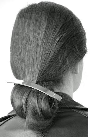 Paris-based hairstylist Sylvain Le Hen designs hair accessories distinguished by sculptural yet functional forms and striking finishes. This gleaming streamlined hair clip can be used in a number of ways depending on the thickness of your hair. Adds a modern and elegant touch. Always on the lookout for the perfect barrette that makes a statement but is not fussy in the least ? This is it ! Handcrafted in France using gold-tone metal Micro screws at curved face 4.75"L x .5"