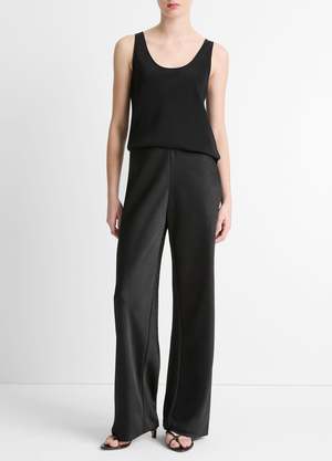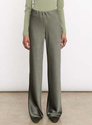 A seasonless best seller, our signature high-waisted satin bias pant drapes fluidly in an easy wide leg.