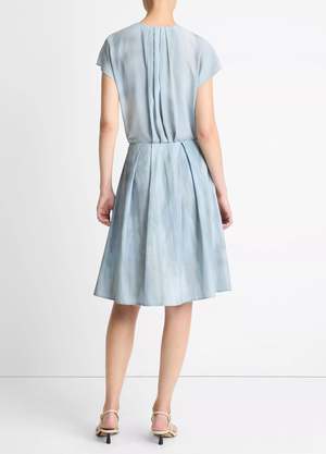 Crafted from crisp Italian cotton, this knee-skimming skirt is printed with a washed ombr motif that exudes a soft watercolor-effect finish. Volume and dimension are enhanced through pleating all the way around.
