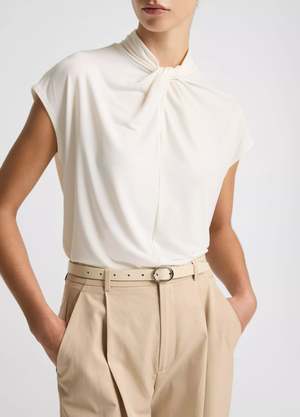 Fluid matte jersey lends this twist-neck cap-sleeve top a dressier appeal, instantly elevating trousers and denim alike. Details: - Slips on. - Model is 5'10" with a 32" bust, 24" waist, and 35" hips. - Model wears a size S. Fabric & Care: - 95% Polyester, 5% Spandex. - Machine wash cold with like colors, only non-chlorine bleach when needed. - Do not tumble dry. - Lay flat to dry. - Cool iron if needed. - Or dry clean. - Imported. Based in Los Angeles, Vince creates elevated yet understated pieces for every day. The collectsions are inspired by the brands California origins and embody a feeling of warmth and effortless style. Vince designs uncomplicated yet refined pieces that approach dressing with a sense of ease.