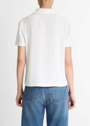 This timeless top beautifully balances the sportiness of the classic polo shirt with the dressy appeal of matte crepe. Finished with signature iridescent agoya shell buttons. 100% Polyester.
