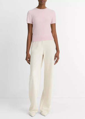 A timeless, transitional essential, this short-sleeve sweater is fine-gauge knit from a sumptuous blend featuring wool and cashmere. - Slips on. - Fully fashioned. - Rib-knit trim. - 21" length. - Hand wash cold separately. Non-chlorine bleach and warm iron if needed. Lay flat to dry. Or dry clean. - 64% Wool, 25% Cashmere, 9% Nylon, 2% Spandex.