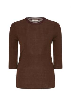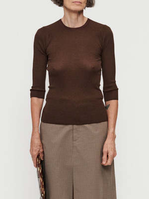 Notes The Heirloom Elbow T in Dover is knit in a delicate Tencel, cotton, and silk blend yarn. It has a skinny, slinky ribbed fit inspired by vintage base layers, with a shrunken fit through the body, a rib trim at the neckline in rayon yarn, and skinny sleeves that fall just past the elbow. Composition Body: 55% Tencel, 25% Cotton, 20% Silk Trim: 100% Dull Rayon