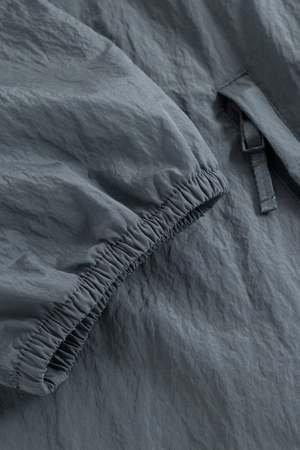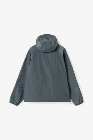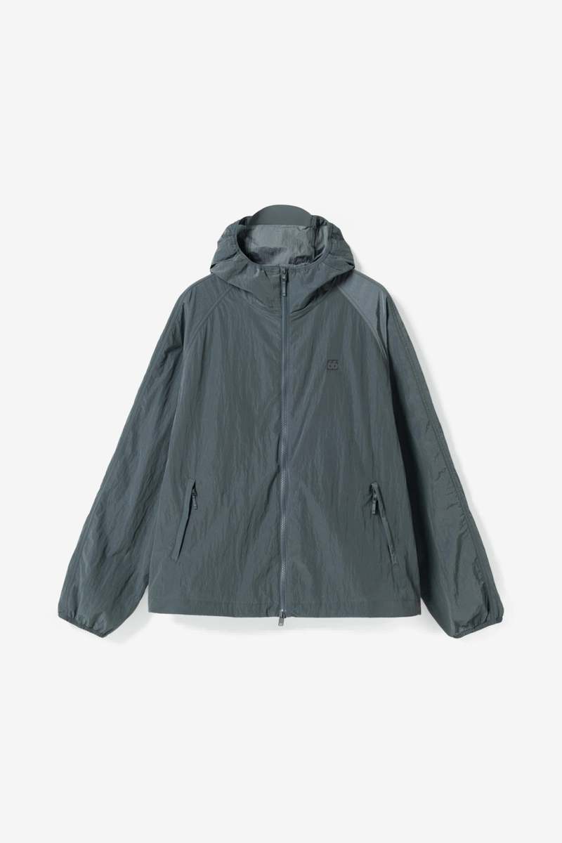 The 66North Kjalarnes Windbreaker in Stormy Weather is crafted from 100% windproof nylon and designed for changing weather conditions. It features elastic finishing at the hem and cuffs, an adjustable hood with a light peak stiffener, two front zipped pockets, one back zipped pocket, and reflective 66North branding. Stylecode: W11454.