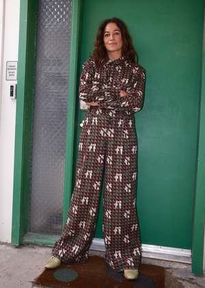 A low waist tailored, slouchy trouser with a button front and wide leg. Made in the Atrium textilea luxe, supersoft substantial fabric with woven lily motifs in cream and green atop black and brown triangles. Made in India. 100% organic cotton. Hand wash cold or dry clean, dry flat. This textile is made with 100% GOTS (Global Organic Textile Standard) non-GMO organic cotton without the use of harmful chemicals and synthetic fertilizers. This garment is sewn in a Fair Trade Certified factory. Julia is 5'8" and wears our Brendan Pant in the Atrium textile, size S, styled with our Alma Shirt in Atrium. XXS: 14 waist, 21 hip, 10 front rise, 31 inseam XS: 15 waist, 21 hip, 10 front rise, 32 inseam S: 16 waist, 22 hip, 11 front rise, 32 inseam M: 17 3/8 waist, 23 hip, 11 front rise, 32 inseam L: 18 waist, 25 hip, 12 front rise, 32 inseam XL: 19 5/8 waist, 26 hip, 12 front rise, 32 inseam 1X: 21 waist, 27 hip, 13 front rise, 32 inseam 2X: 22 waist, 29 hip, 13 front rise, 32 inseam 3X: 24 waist, 31 hip, 14 front rise, 31 inseam 4X: 27 waist, 33 hip, 14 front rise, 31 inseam Please note: some of the measurements on this style have been updated. Please consult the measurements to select which size will fit you best. Measurements taken flat; to calculate full circumference of chest, bicep, waist, hip, or thigh, double the measurement provided.