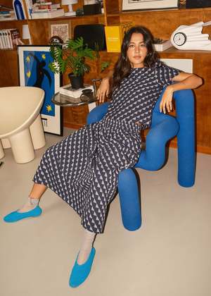 A fully reversible, midi length skirt with an elasticated waistband. Made in our dungaree textile, a dark indigo structured singlecloth featuring a woven triangle motif in cream. Made in India. 100% organic cotton. Machine wash cold or dry clean, tumble dry low. This textile is made with 100% GOTS (Global Organic Textile Standard) non-GMO organic cotton without the use of harmful chemicals and synthetic fertilizers. This garment is sewn in a Fair Trade Certified factory. Asalia is 5'7" and wears our rara midi in the dungaree textile, size S, styled with our louisa top in dungaree. XXS: 32 long, 12 unstretched waist, 22 stretched waist XS: 33 long, 12 unstretched waist, 23 stretched waist S: 33 long, 13 unstretched waist, 24 stretched waist M: 34 long, 14 unstretched waist, 25 stretched waist L: 34 long, 15 unstretched waist, 26 stretched waist XL: 35 long, 16 unstretched waist, 27 stretched waist 1X: 35 long, 18 unstretched waist, 28 stretched waist 2X: 35 long, 19 unstretched waist, 30 stretched waist 3X: 35 long, 21 unstretched waist, 31 stretched waist 4X: 35 long, 22 unstretched waist, 33 stretched waist *Measurements taken flat; to calculate the full circumference of the garment on chest, bicep, waist, hip, or thigh, double the measurement provided.