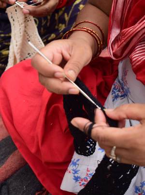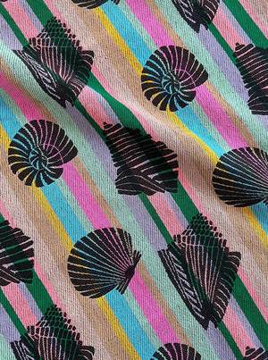 A reversible tank with an elasticated back neck and unique hand-crocheted detail along the bottom hem. Made in Ace & Jig's Sandcastle textilea midweight singlecloth featuring black shell motifs atop multicolored woven stripes in neon peach, lavender, sky blue, and rich greenwhich reverses to beachcomber. Made in India. 100% organic cotton. This special piece features thoughtfully handmade crochet created by female artisans in Purdah as part of an initiative by Projecthrive. Crochet is traditional to these communities and each crochet piece is unique. Hand wash and line dry or dry flat with cool iron. Please handle with care. This textile is made with 100% GOTS (Global Organic Textile Standard) non-GMO organic cotton without the use of harmful chemicals and synthetic fertilizers. This garment is sewn in a Fair Trade Certified factory. Nyawuta is 5'10" and wears our Crochet Colette Top in the Sandcastle/Beachcomber textile, size S, styled with our Crochet Ramona Skirt in Beachcomber. XXS: 21 long, 16 chest, 17 waist XS: 21 long, 17 chest, 18 waist S: 22 long, 18 chest, 19 waist M: 22 long, 19 chest, 20 waist L: 23 long, 20 chest, 21 waist XL: 23 long, 21 chest, 23 waist 1X: 24 long, 23 chest, 24 waist 2X: 24 long, 25 chest, 26 waist 3X: 25 long, 27 chest, 28 waist 4X: 25 long, 29 chest, 30 waist *Measurements taken flat; to calculate full circumference of the garment on chest, bicep, waist, hip, or thigh, double the measurement provided.