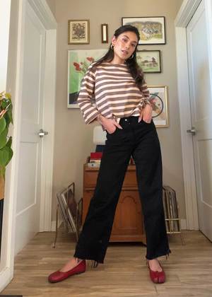 A -length sleeve top with a crew neck and 2-button shoulder placket. Made in the Crete textile, a midweight twill singlecloth featuring woven stripes in cappuccino brown, light peach, and natural, with multicolored flecks throughout. - Made in India - 100% cotton - Machine wash cold or dry clean - Tumble dry low - Sewn in a Fair Trade Certified factory Kyra is 5'4" and wears our Dockside Top in the Crete textile, size S. Measurements (taken flat; +/- a natural tolerance due to the sewing process). To calculate full circumference at chest, bicep, waist, hip, or thigh, double the measurement provided: - XXS: 21 " long, 18" chest, 19" waist, 6 " bicep - XS: 22" long, 18 " chest, 19 " waist, 6 " bicep - S: 22 " long, 19 " chest, 20 " waist, 7" bicep - M: 22 " long, 20 " chest, 21 " waist, 7 " bicep - L: 23 " long, 22" chest, 22 " waist, 8" bicep - XL: 23 " long, 23 " chest, 24" waist, 8 " bicep - 1X: 24 " long, 24 " chest, 25 " waist, 9 " bicep - 2X: 24 " long, 26 " chest, 27 " waist, 10" bicep - 3X: 25 " long, 28 " chest, 29 " waist, 11" bicep - 4X: 25 " long, 30 " chest, 31 " waist, 12" bicep Pre-order: shipping February 18th.
