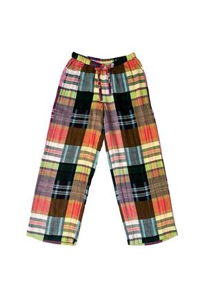 A pull-on pant with pockets, an elasticated drawstring waist, and a straight leg. Made in our Paintbox textile, a supersoft lightweight luxe double gauze featuring a complex multicolored plaid in rich hues. Made in India. 100% organic cotton. Hand wash cold or dry clean, dry flat. This textile is made with 100% GOTS (Global Organic Textile Standard) non-GMO organic cotton without the use of harmful chemicals and synthetic fertilizers. This garment is sewn in a Fair Trade Certified factory. Kyra is 5'4" and wears our Leone Pant in the Paintbox textile, size S, styled with our Diego Shirt in Paintbox. XXS: 13 waist, 18 stretched waist, 17 hip, 9 front rise, 29 inseam XS: 13 waist, 19 stretched waist, 18 hip, 9 front rise, 30 inseam S: 14 waist, 20 stretched waist, 19 hip, 10 front rise, 30 inseam M: 15 waist, 21 stretched waist, 20 hip, 10 front rise, 30 inseam L: 17 waist, 22 stretched waist, 21 hip, 11 front rise, 30 inseam XL: 18 waist, 23 stretched waist, 22 hip, 11 front rise, 30 inseam 1X: 19 waist, 24 stretched waist, 24 hip, 12 front rise, 30 inseam 2X: 21 waist, 26 stretched waist, 26 hip, 12 front rise, 30 inseam 3X: 23 waist, 28 stretched waist, 28 hip,. 13 front rise, 29 inseam 4X: 25 waist, 30 stretched waist, 30 hip, 13 front rise, 29 inseam *Measurements taken flat; +/- a tolerance natural to the sewing process. To calculate the full circumference of the garment on chest, bicep, waist, hip, or thigh, double the measurement provided.