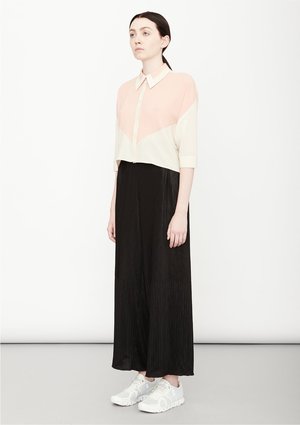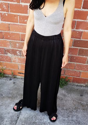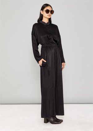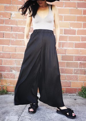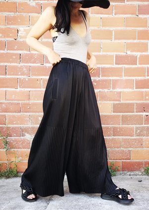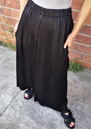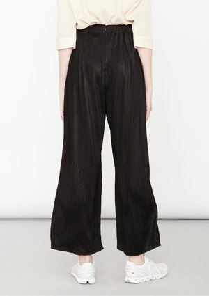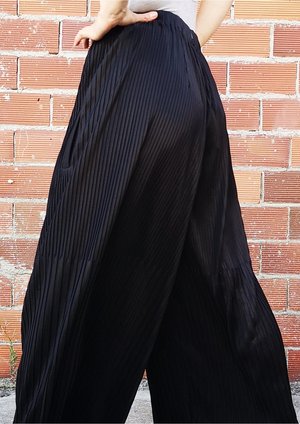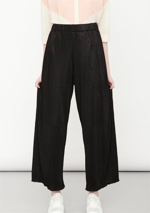 Wide, long trousers with elastic waist, front pockets MATERIALS ALL PARTS 58% TRIACETATE / 42% POLYESTER PLEATED TRIACETATE - JAPANESE - black POCKET WELT 100% POLYESTER THIN DRAPING - JAPANESE - black