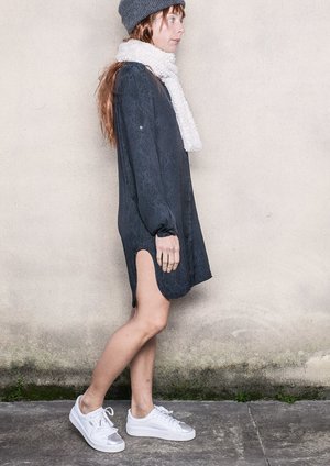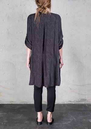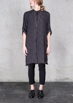 CASUAL & CHIC BLOUSE / DRESS Long straight cut BLOUSE with elegantly concealed button front, roll up sleeves for a diverse wearing experience. It can also be worn as a DRESS, over tights or leggings - and even as a CARDIGAN when worn open over some pants, skirt or shorts! This is a very versatile piece, that will enhance your wardrobe perfectly! We also recommend this piece for any types of vacation or business trips, as it is made in light but easy to care and wrinkle free fabric! MATERIAL 100% POLYESTER Beautiful Japanese Jacquard Satin with Snake pattern SIZE Available in ONE SIZE fits XS - S - M - L The model is 172 cm / 5'7 tall and wearing ONE SIZE