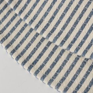 Our bucket hat is the perfect accessory for any summer look while keeping you protected from the sun. Enjoy sunny beach days in this retro style. S/M - 49cm M/L - 52cm Featuring our railroad stripe print on our natural denim. Made of 100% cotton.