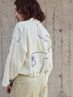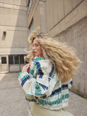 The Peyton Shirt by Eve Gravel is an easy, modern blouse with subtle design details that elevate it beyond the everyday. It features a classic collar, clean button front, and softly dropped shoulders for an undone, contemporary feel. Adjustable drawcords at the hem allow you to wear it loose or gently cinched, shifting the shape to suit your mood. The original prints are exclusive to Eve Gravel, making this thoughtful piece even more special. Sizing notes: This shirt fits true to size. We recommend going with your usual size. Please see the size chart at the end of the photos for fit guidance. Bobbie Jo is wearing size S. Eve Gravel models Luca and Georgia are also wearing size S. 50% Cotton, 50% Viscose (Oeko-Tex Certified) Print exclusive to Eve Gravel. The layout of the print varies according to each piece, making each one unique and different. Machine wash delicate on cold with similar colours, hang to dry. Iron inside out on low. Made in Montreal, Canada. Please note that this listing is for pre-order only. Please allow up to 20 working days for delivery.