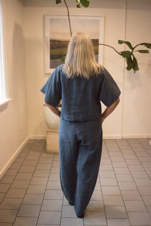 The Jordie Top by Eve Gravel is a simple round neck, short-sleeved top that is perfect for a modern and casual look. It is constructed from a soft 100% linen fabric with wide short lapelled sleeves and a central vertical stitching at the front to add a subtle detail. Sizing Notes: This shirt fits true to size. We recommend going with your usual size. Please see the size chart at the end of the photos for fit guidance. Also available in Emerald and Cereal. Marisa is wearing size S. Eve Gravel model Luca is wearing size S. 100% Linen (Oeko-Tex Certified) Machine wash delicate on cold with similar colours, hang to dry. Iron inside out on low. Made in Montreal, Canada.