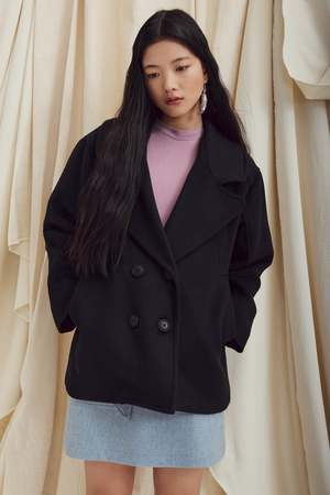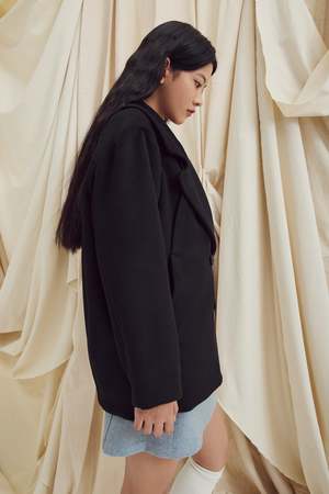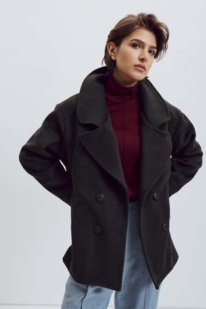 The Damon Coat by Eve Gravel is a timeless, classic mid-length piece that perfectly embodies the brand's oversized aesthetic. Featuring two integrated front pockets with wide cutouts, it offers a modern and unique touch. Fully lined with luxurious Kasha lining, this coat is designed for all seasonsideal over a shirt in autumn or layered with a thick sweater on colder days. Chey is 59 1/2 and wears size S (Dark Khaki). Elena is 59 and wears size S (Dark Burgundy). Main: 50% Wool, 50% Polyester. Lining: 65% Polyester, 35% Cotton. Made in Montreal, Canada.