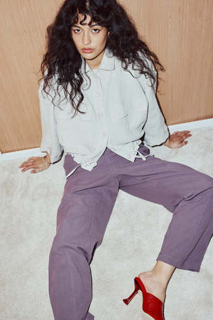 The Lewis jacket is a must-have for those cooler mornings. Featuring a front button placket with a shirt collar, it is equipped with two large applied pockets at the front. A drawstring at the waist allows you to adjust for a more 'bomber' style. Made in Montreal, Canada. Zo is 5'7" and wears size S. Composition: 100% Linen (OEKO-TEX certified). Care Instructions: Machine wash on delicate cycle with cold water and similar colors. Hang to dry. Iron inside out at low temperature.