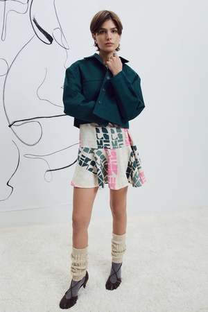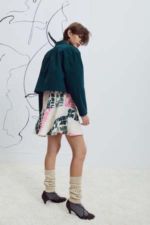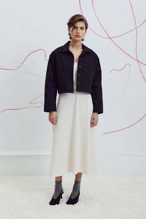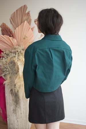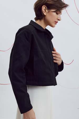 The Zaria Jacket by Eve Gravel is a cropped, structured, boxy-fit jacket designed for easy layering and timeless appeal. Features a button placket and side pockets for a refined finish. Proudly designed and made in Montreal, Canada. Fits slightly oversized. We recommend going with your usual size. Bobbie Jo is wearing size S. Model is wearing size S. Fabric: 97% Polyester, 3% Spandex. Machine washable on delicate cycle with cold water. Wash with similar colours. Dry flat and iron inside out at a low temperature.