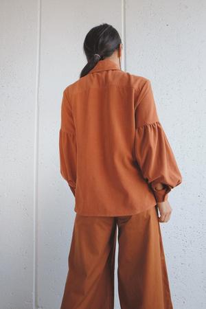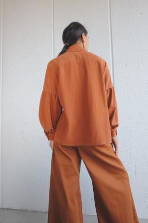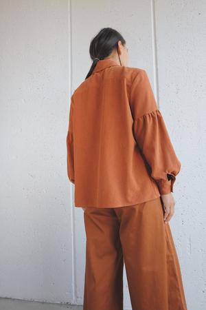 - romantic long sleeve button-front collar blouse - features cuff with balloon sleeve and dyed to match buttons - 100% raw silk - made in california - care instructions: hand wash cold or dry clean only, do not bleach, okay to iron - the fit of the theo top runs slightly large in the chest so it is recommended to size down if in between sizes - model is wearing size 2 - sizing: size 4 chest 40in, front length 27.5in - size 6 chest 42in, front length 28.5 - size 8 chest 44in, front length 29.5 - photos courtesy of selva negra