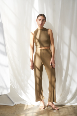 High rise rib knit pants with elasticized waist. Available in Seaside Rayon Rib, Tortilla Rayon Rib, and Matcha/Seaside Rayon Rib. - Fiber Content: 85% Rayon, 8% Cotton, 7% Polyester - Made in Los Angeles, California - Madeline is 5'6" wearing size XS - Care instructions: machine wash cold with like colors, lay flat to dry, do not bleach sabi pant measurements xs s m l xl xxl 3xl 4xl Waist 24"-26" 27"-28" 28"-30" 30"-31" 31-35" 35"-39" 39"-43" 44"-48" Hip 35"-38" 37"-40" 39"-43" 42"-46" 44"-48" 46"-50" 50"-54" 56"-60" Selva Negra was founded in 2016 in a tiny Brooklyn apartment in Crown Heights. The collectsion represents drive, holistic energy, united empowerment, careful craftsmanship, and engineered comfort. Designers, Kristen Gonzalez and Sam Romero found an immediate connection after meeting in New York post-graduation from FIT (KG) and Parsons (SR). They unite their Annie Hall tomboy style and bold feminine identity to embody a collectsion that aims to support women and their individuality. Influenced by their Latina heritage, they support their collectsion with intentionality and strength to combine a collectsive of honest and mindful products made in Los Angeles, California. Their Products Selva Negra sources their fabrics locally in Los Angeles, CA and some imported goods from Japan and Turkey. All trims are locally sourced from Los Angeles and also imported from Japan. Their collectsion is fully produced in Downtown Los Angeles using ethical and sustainable practices.