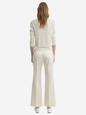 TOTEME's Kick Flare Raw Edge Trousers are straight leg trousers that kick out gently at the hem to sit just above the ankle. Cut with a raw-edge waist from a cotton-viscose fabric with a structured satin feel, they are finished with a front zip closure and belt loops. Complement the length with ballerinas or pumps. Product Details Designer ID: 262-WRB0367-FB0608 Color: Stone Composition: 50% cotton, 50% viscose Imported.