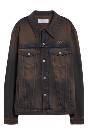 The Overdyed Den Skate Jacket by Off-White is a stylish piece crafted for the SS25 season. Made in Italy, this jacket features a unique overdyed design in a brown colorway.