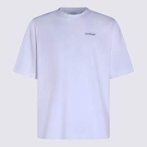 Men > Clothing > Topwear > T-Shirts White cotton T-shirt by Off-White featuring short sleeves, a round collar, and front and back logo2 print. Regular fit. Composition: 100% Cotton.