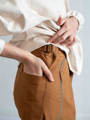 A modern pant with a western wink. The Caramel Rodeo Pants are cut from durable U.S.-milled organic cotton canvas, bringing structure and wearability to an everyday essential. Finished with contrast mini-check piping along the side seam, it delivers just the right amount of visual interest without overpowering. Designed to sit naturally at the waist, the silhouette features a classic button fly, straight relaxed legs, and adjustable pull-tab waistbands for a customizable fit. Functional, versatile, and quietly bold, its a piece that bridges utility with refinementequally at home dressed up or worn casually. Details: - 100% organic cotton canvas, made in the U.S. - Mini-check piping detail at side seams - Straight-leg, high-waisted fit - Button fly front closure - Adjustable pull tabs at the back waistband - Machine wash cold with like colors, tumble dry low