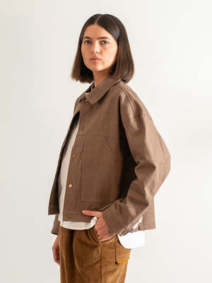 The Cocoa Varsity Jacket reimagines timeless workwear with a vintage varsity spirit. Crafted from sturdy, washed canvas, it offers a balance of structure and ease, breaking in beautifully with wear. Its oversized, boxy silhouette makes it the perfect layering piece, while snap-front closures and clean seaming lend a subtle utilitarian edge. Generous patch pockets add function without fuss, making it the kind of jacket that grounds an outfit with casual refinement. Durable, versatile, and endlessly wearableits built for everyday rotation with a quiet nod to heritage style. Details: - 100% washed cotton canvas - Inspired by vintage workwear staples - Oversized, boxy silhouette - Front metal snap closures - Large front patch pockets - Midweight for year-round layering - Machine wash cold with like colors, tumble dry low