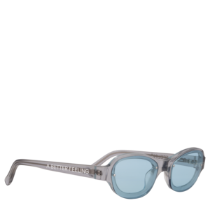 A BETTER FEELING is a product-based company focused on functional design that provokes happiness, with the initial offering as eyewear. Created in London in 2018 by Cairo-born Xander Ghost, A BETTER FEELING is driven by the principle of achieving connection, dedicated to creating synergy between product and person through a symbiotic visual identity and material language. SKYE is an acetate frame with flush lenses embedded within the frame. Each lens is attached with two stainless steel screws for a minimal finish. The temples are laser-engraved with the A BETTER FEELING logo2. Featuring lenses with 100% UV protection.. Composition: Smoke grey acetate frame, cloud blue nylon lenses Dimensions: Frame width: 122.2mm; temple length: 141.0mm