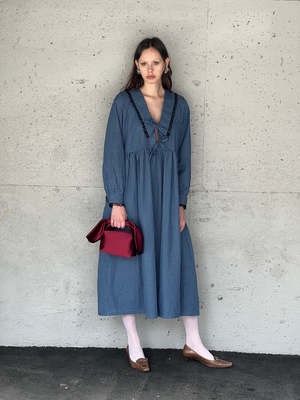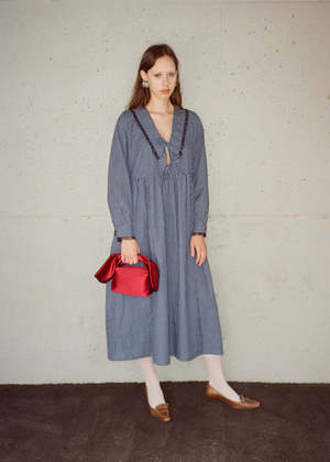 The Woolf Dress by A Bronze Age is a charming maxi dress designed to make an impression. Featuring long sleeves and a playful sailor collar trimmed with delicate cream lace, this dress combines timeless elegance with a touch of whimsy. Its flowing silhouette moves gracefully with you, perfect for everything from casual days out to special occasions. Dress it up or downyoull love how effortlessly it blends classic style with a fresh, playful vibe! 100% Cotton Hand wash cold, hang to dry Made in Vancouver. A Bronze Age model is wearing S.