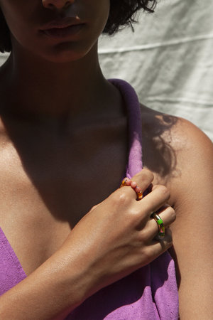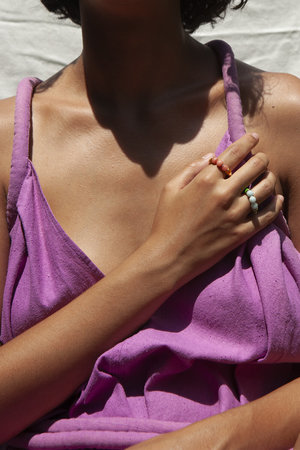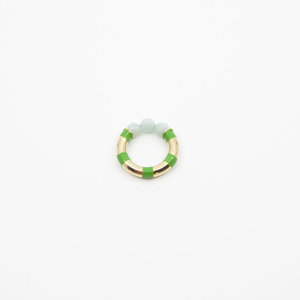 14K gold plated silver hollow ring with hand-painted stripes and semi-precious beads. Handmade in NYC. Comes in 14K gold plated silver or sterling silver. *Only comes in size 7.