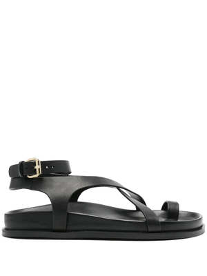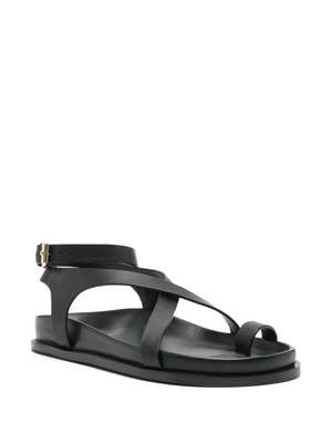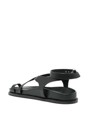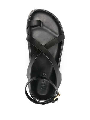 A new offering for A.Emery's most popular style, the Jalen Slim sits atop a moulded footbed, featuring a toe hold and two criss-cross straps that encase the foot and finish with a soft gold buckle around the ankle. Product Details Designer ID: 242233 Color: Black Composition: 100% Leather upper & insole; 100% Rubber outsole Imported